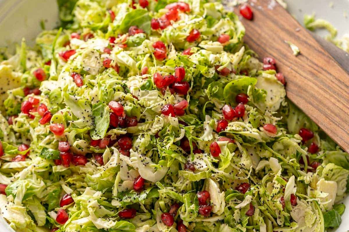 Shaved Brussels Sprout Salad with Pomegranate Seeds